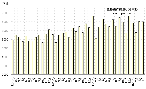 据海关总署公布统计数据显示,2015年4月份我国进口铁矿石量为8021.34万吨,同比减少317.37万吨,降幅为3.81%。2015年1-4月份累计进口铁矿石3.07亿吨,同比增长0.63%。