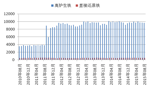 二、2015年8月份生铁产量环比增加