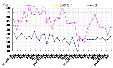 2017年3月份我国冷轧卷板进出口双双回升。据海关统计数据显示,2017年3月份我国进口冷轧卷板27.19万吨,环比增长15.2%,同比增长7.9%;出口冷轧卷板37.13万吨,环比增长29.1%,同比增长35.5%(详见图2)。