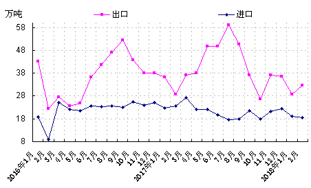 二、2月份冷轧板卷出口回升 进口小降