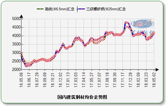 5月上旬国内建筑钢材市场小幅震荡为主。市价涨后,下游需求对高位资源接受程度不高,整体成交表现疲软,且期螺持续偏弱,亦下挫现货心态,部分商家有让利出货操作,连累钢市主流价位不断走低,但部分地区环保检查继续加码,钢厂检修减产情况仍旧普遍,各主导大钢厂相继上调出厂价格带动下,商家挺价意愿较强,价格快速走高,然由于涨势过快,下游需求对高位资源接受程度有限,价格无奈冲高回落。