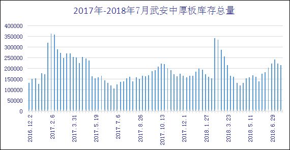 图3 2017年-2018年7月武安地区中厚板库存情况