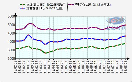 由下图二所示,受限产的影响,方坯坯资源十分的紧俏,管坯价格也一涨再涨,自4月初开始,管坯资源价格一路上涨,现山东管坯资源出厂价格已由3850元,上调至4350元,累计上调了500元。常州东方管坯由于限产原因也由3990元,上调至4460元,累计上调470元。虽然在7月初,受贸易战影响,期货市场下跌,钢坯资源应声回来,但是在短暂的限产政策调整后,7月末至今短短半个月管坯资源上调200元左右,可见环保限产对于钢材的价格上抬的积极作用。