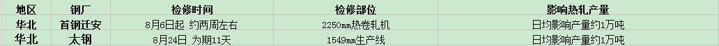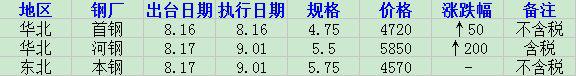 表1八月份第二周国内主导钢厂调价政策汇总表