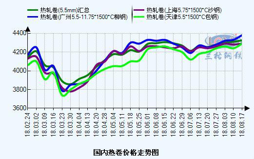 据不完全统计,本周,国内共有河钢、首钢、本钢等几钢厂出台了新一期热卷价格政策,其中河钢大幅上调厂价200元(含税),首钢上调50元(不含税),本钢价格维稳(不含税)。可见,从8月份的涨势配合环保限产的持续催化,钢厂端态度显乐观,从本月已出台的钢厂厂价来看,多家钢厂盘价