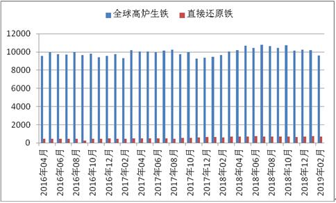 根据国际钢铁协会公布的最新统计数据显示,2019年2月份全球高炉生铁总产量较2019年1月份相比有所减少,2019年2月份直接还原铁总产量较2019年1月份相比有所减少;全球高炉生铁日均产量小幅增加,全球直接还原铁日均产量小幅增加。