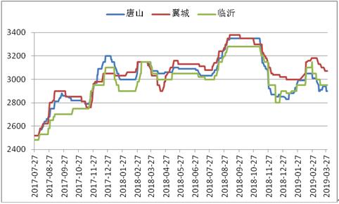 截至3月29日,炼钢生铁天津地区报价2900元(吨价,下同),较月初跌100元;唐山地区报价2900元,较月初跌110元;翼城地区报价3070元,较月初跌110元;临沂地区报价2950元,较月初跌100元(详见图3)。