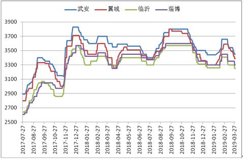 截至3月29日,铸造生铁天津地区报价3500元,较月初跌210元;武安地区报价3450元,较月初跌210元;翼城地区报价3390元,较月初跌200元;上海地区报价3450元,较月初跌150;临沂地区报价3250元,较月初跌160元(详见图4)。
