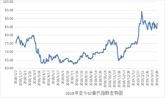 3月份国内铁矿石市场波动运行。月初,国内铁矿石市场多处于盘整状态,由于春节及正月十五刚过,以及两会的召开,钢材市场终端需求始终难以启动,由此钢材价格上涨十分艰难,唐山普碳方坯价格仅有50元左右的波动幅度,月初3490元,最高涨至3500元,月底在3430元,为此看出,成材市场价格的波动区间有限,直接影响铁矿石价格难有明显上下行趋势。而临近月底,巴西淡水河谷溃坝事件的消息不断发酵,澳洲飓风气候影响力拓发货量,由此对于铁矿石市场上涨的预期有所增加,从铁矿石掉期市场开始大幅拉涨,传导至国内铁矿石期货主力合约最大涨幅达到4%以上,国内港口现货价格也纷纷上调,报价十分混乱。进入4月份,铁矿石市场仍受到一定利好因素的影响,具备一定上涨条件,但由于前期价格上涨过快或出现调整阶段,而整体趋势将处于上行趋势。