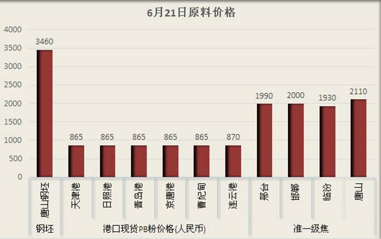 原料市场:唐山钢坯价格稳,PB粉价格涨10-15元,准一级焦邢台、唐山价格降100。