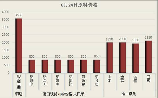 原料市场:唐山钢坯价格涨50,PB粉价格降10元,准一级焦价格暂稳。
