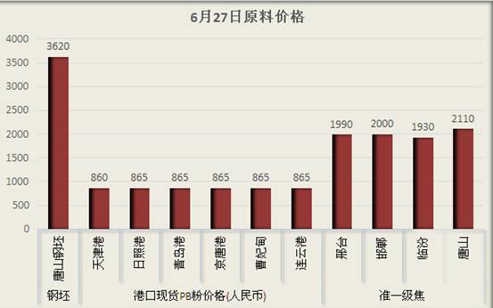 原料市场:唐山钢坯价格涨20,PB粉价格涨5-15元,准一级焦价格暂稳。