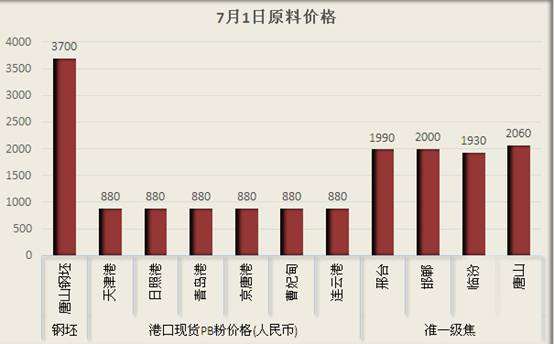 原料市场:唐山钢坯价格涨30,PB粉价格涨10元,准一级焦唐山价格降50。