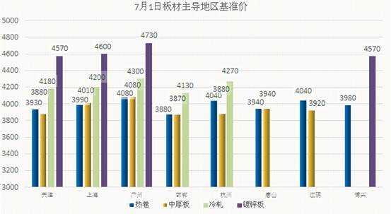 1、兰格钢铁板材主导地区基准价