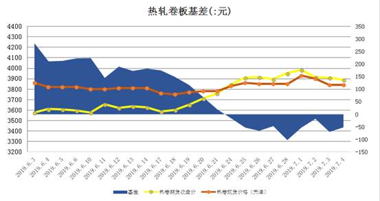 基差方面,4日天津热卷现货价格3840元(吨价,下同),期货价格3892元,期现基差为-52元,较上个交易日收窄18元,或可尝试反向套利。