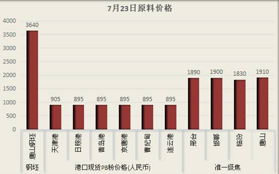 原料市场:唐山钢坯价格降20,PB粉价格普降5元,准一级焦邢台、邯郸、临汾价格涨100 。