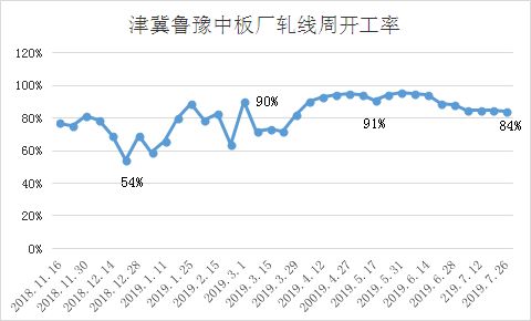 5、津冀鲁豫中板轧线开工周降1% 部分钢企日产稍减