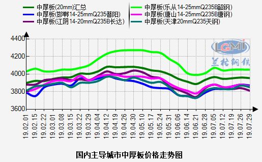 图1 2019年2月—2019年7月重点地区中厚板价格走势图