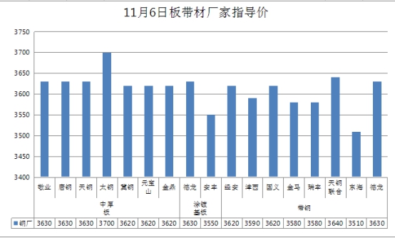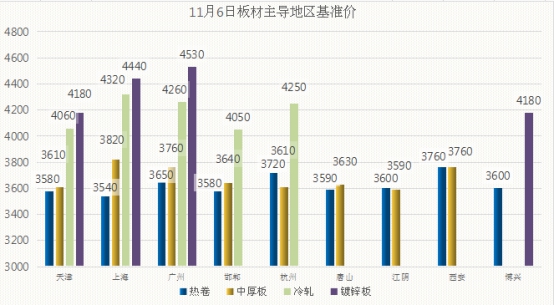 今日开盘,国内板带材市场价格稳中拉涨。在宽松货币政策消息提振下,今日期货维持拉涨,钢坯、小窄带价格拉涨20元,带钢厂出清日产。在期货高位走势下,今日各成品板材价格也呈现趋强格局。其中中厚板、热卷普遍拉涨10-20元,冷轧维稳,镀锌彩涂稳中趋强。成交情况尚可。不过今日的成交好转是期货及钢坯带动了入场采购需求,并非是刚需启动。进入11月份,各商家对于后市行情仍偏于悲观。今日收盘,期货拉涨幅度收窄,明日上冲动力或有所减弱,因此预计明日国内板带材市场价格以稳中趋弱可能性较大。