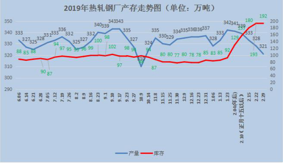 图3 全国热轧钢厂产存走势图
