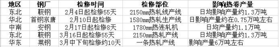 三、二月份两家钢厂出台检修计划