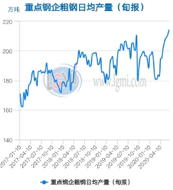 图2 重点钢企钢材库存(旬报)图 图3 重点钢企粗钢日均产量(旬报)图