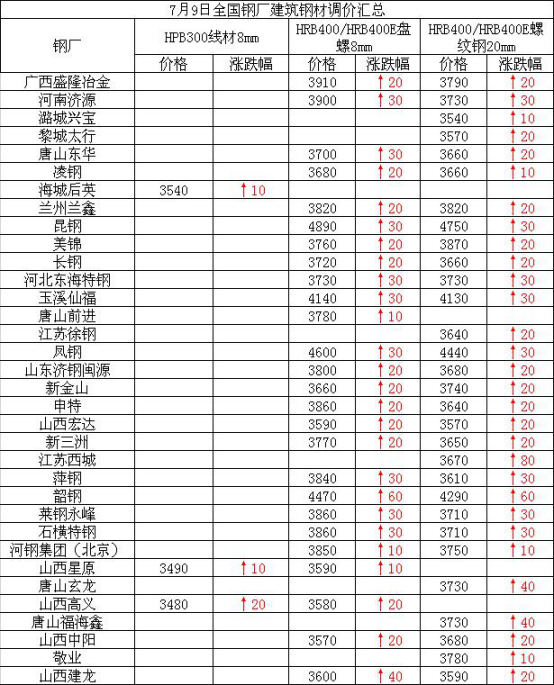 兰格建筑钢材日盘点(7.9):价格持续上涨 出货有所减量