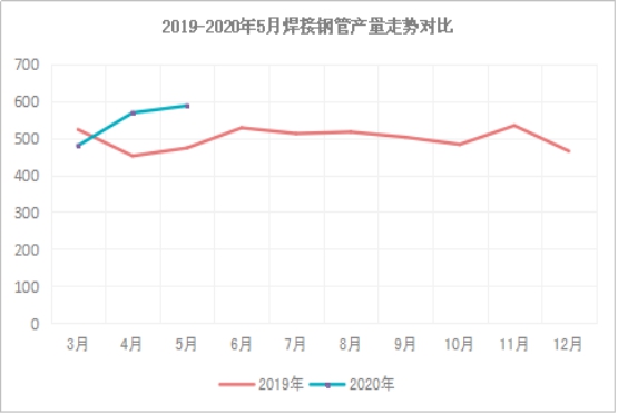 图2 2019-2020年5月统计局焊管产量走势图