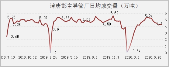 据兰格钢铁云商平台监测数据显示:截至2020年7月初唐山地区11家145mm带钢厂13条轧线,开工率69.23%,产能利用率75.31%较去年同期高34.71%;16家232mm以上带钢厂29条轧线开工率82.76%,产能利用率71.33%较去年同期高5.54%.产量已经接近峰值.巴西淡水河谷公司首席财务官表示该公司的目标是2020年生产3.1-3.3亿吨铁矿石,或在下半年加大产量。同时,七月至金九银十期间仍处传统生产旺季,预估全国粗钢日均产量超过300万吨,因此供应缺口将逐步缓解,库存同比或将维持不降反增的现象,至第四季度随需求季节性萎缩,板带材产量惯性减少。