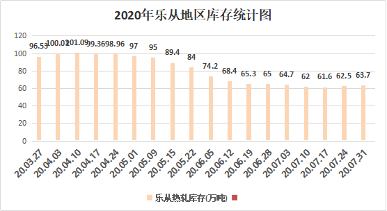 本周乐从热轧库存63.7万吨,较上周增加1.2万吨。