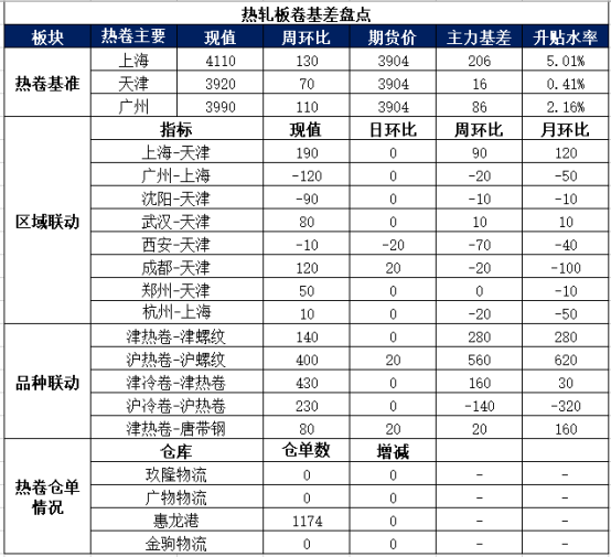 钢厂库存较上周持平:目前全国35家钢企热卷厂内库存106万吨,与上周持平。其中华北14家钢企热卷厂库21.8万吨,周减0.7万吨;东北4家钢企热卷厂库3万吨,周减0.5万吨。