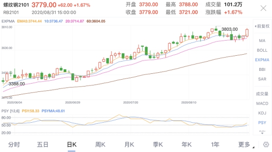8月31日,期螺2101合约早盘走势偏强,午收3776元涨幅1.59%;铁矿石2101合约早盘强势上涨,午收853.5元涨3.77%。焦煤2101合约早盘震荡走强,午收1242涨1.93%;今日期货偏强走势,管坯并未受期货影响价格变动,但是整体钢市对下半年需求预期还是较为看好,资源税法将在9月1日施行并且8月份制造业采购经理指数为51.0%,需求持续恢复的显示。各地区建筑行业,基建等加快施工步伐,等等这些利好面无不显示着下半年随着国内经济不断复苏对钢材的需求的增加。