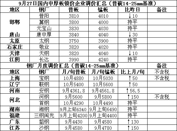 - 快讯:27日上海中板价格报稳2020-9-27