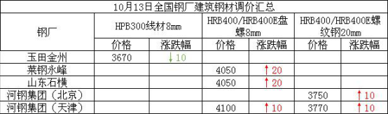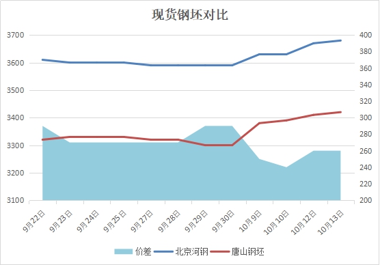 坯螺价差:以北京市场为例,10月13日河钢螺纹基价3680元与钢坯3420元价差260元,较上个交易日持平。