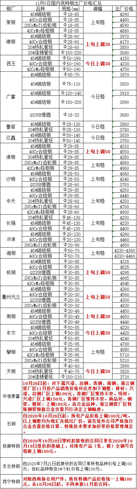 发表日期:2020-11-5 17:20:31 兰格钢铁