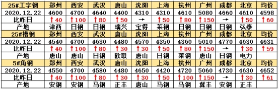 - 12月22日(9点)唐山型材钢厂工字钢实时调价汇总2020-12-22
