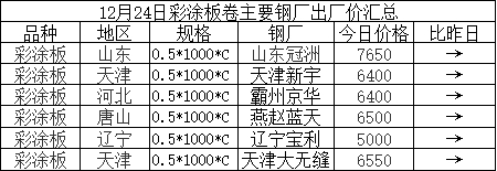 兰格涂镀板卷日盘点(12.24):涂镀价格维持回调趋势 成交清淡