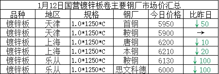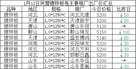 兰格涂镀板卷日盘点(1.12):涂镀价格维持回落趋势 成交清淡