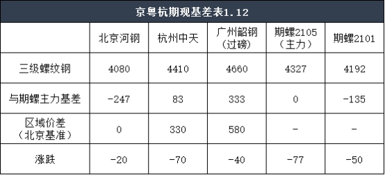 今日广州市场价格延续昨日跌势。目前一线资源主流价格4650-4680元/吨,二线主流价格4570-4600元/吨,三线主流价格4460-4480元/吨。期货方面,纹钢2105今日震荡偏弱,收4327,跌1.75%,减仓54764手至1193034手,收于MA20线上方。原料方面,唐山钢坯今日执行13日结算价3810元,含税出厂。市场成交方面,今日开价广州现货市场价格延续昨日跌势,商家反馈寒冬需求减弱,下游采购放缓,10家样本贸易商合计出货约15600吨。目前来看,期螺震荡走低,市场价格跟随其下,多数商家主动冬储意愿不强,市场交投氛围或逐步减弱,库存持续累积。另外受疫情影响南方的制造业工厂将在1月中旬逐渐开始春节假期,较法定假期提前三周。制造商通常在农历新年前一到两周放假,或对广州建材市场造成一定的影响,预计明日广州建材价格或延续弱势。