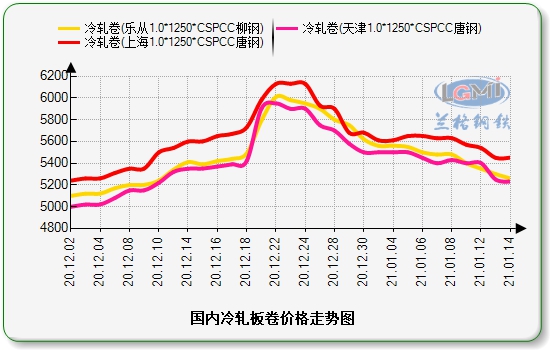 兰格冷轧板卷日盘点(1.14):价格明显下跌 市场需求乏力
