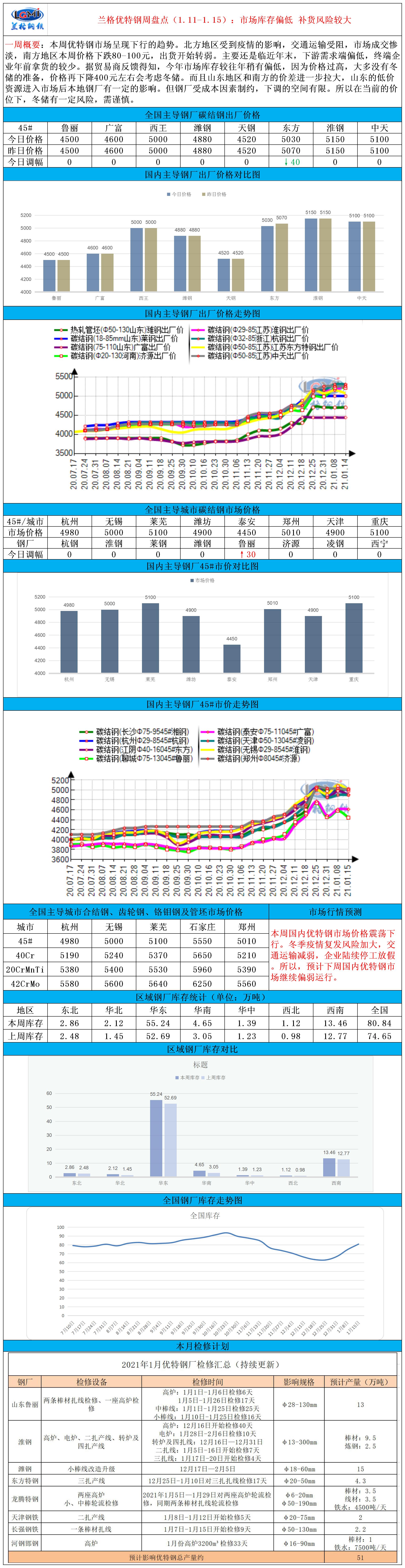 - 兰格优特钢周盘点(1.11-1.15):市场库存偏低 补货风险较大2021/1/15
