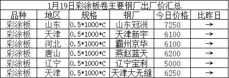 彩涂板卷钢厂调价汇总:
