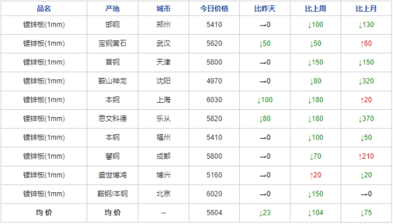 (1)国内镀锌板卷价格信息汇总