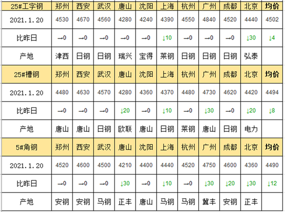 - 1月20日(9点)唐山型材钢厂工字钢实时调价汇总2021/1/20