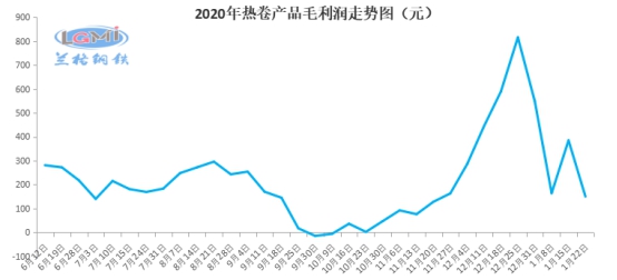 1月22日,兰格云商平台监测的全国热轧卷板钢厂产量较上周同期有所上涨,钢厂库存有所回升,钢厂利润缩减。