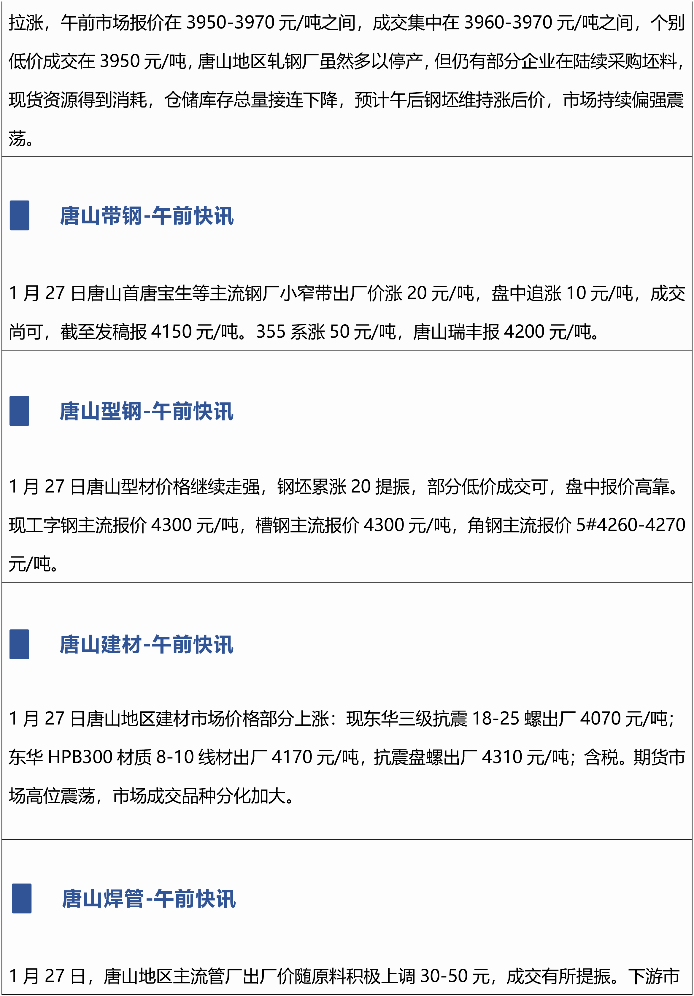 1月27日兰格唐山钢市午间播报