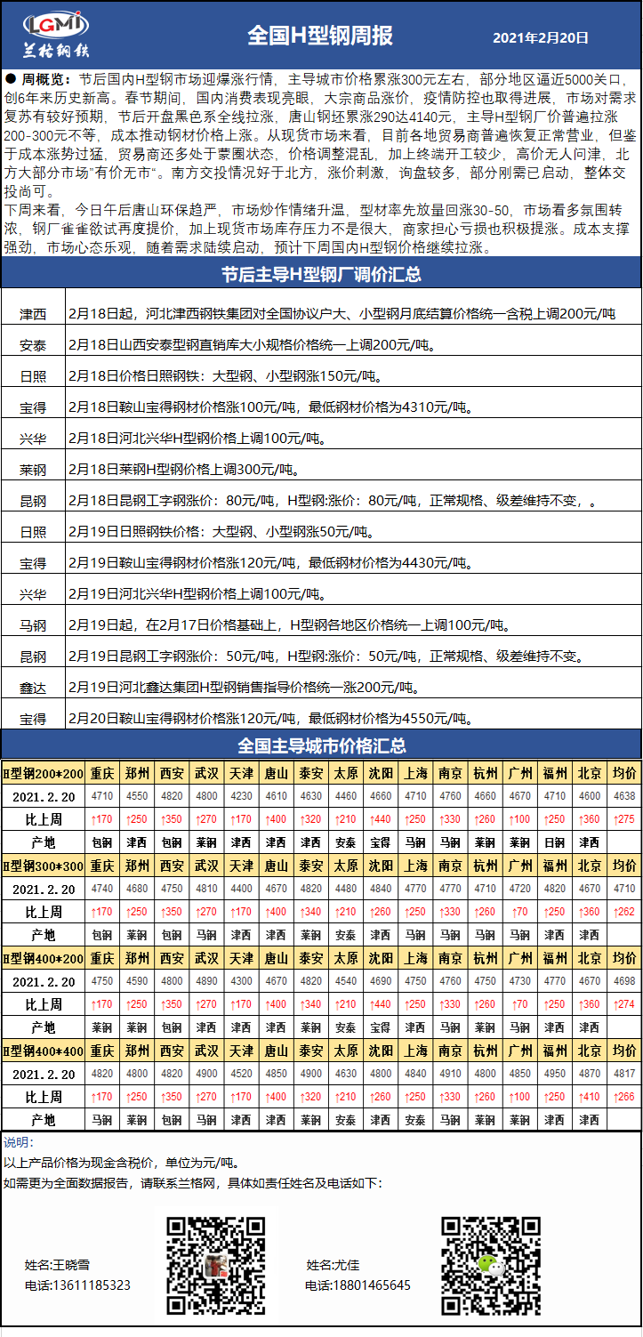 兰格H型钢周盘点(2.20):节后价格暴涨300 下周涨势不改