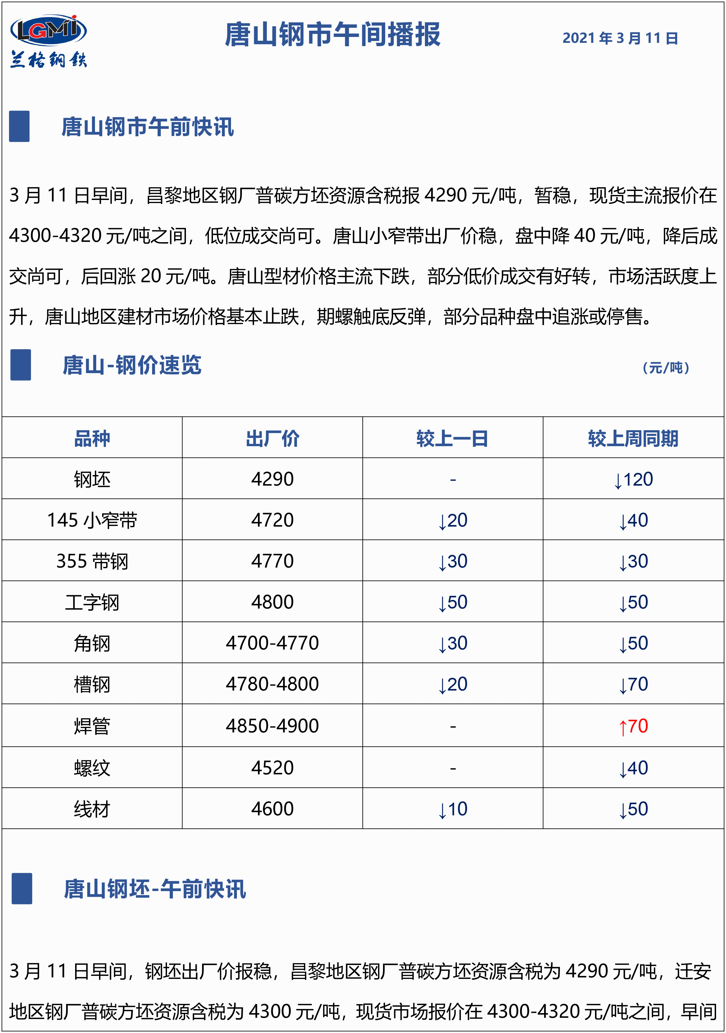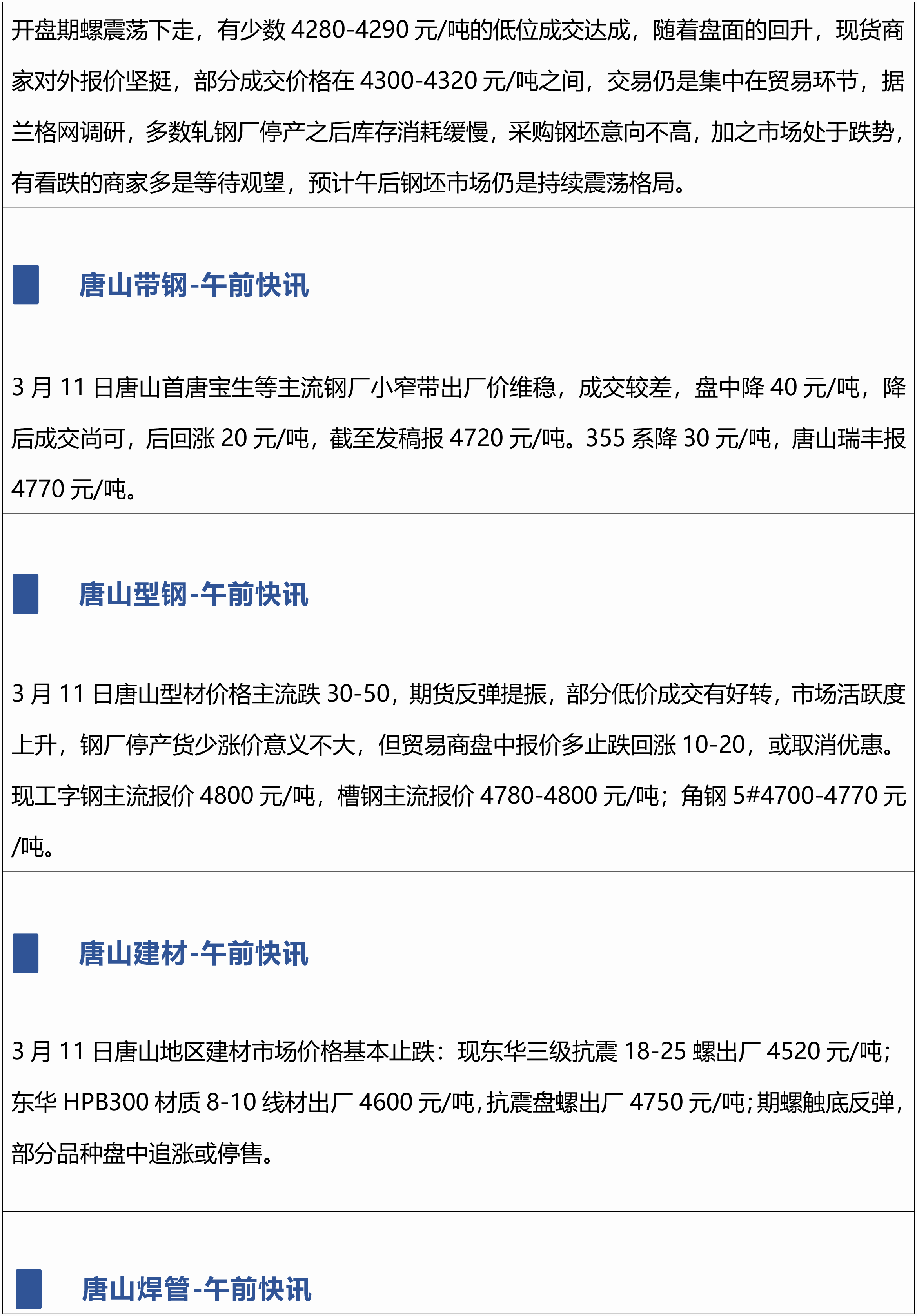 3月11日兰格唐山钢市午间播报