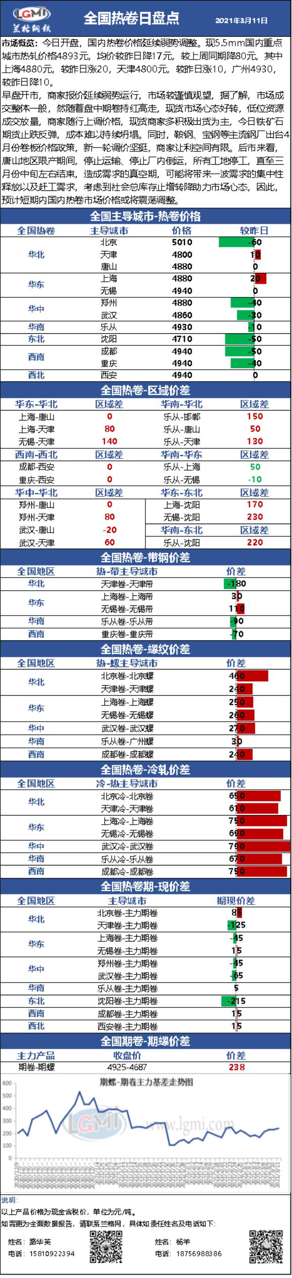 兰格热轧卷板日盘点(3.11):热卷价格部分回涨 市场成交平平