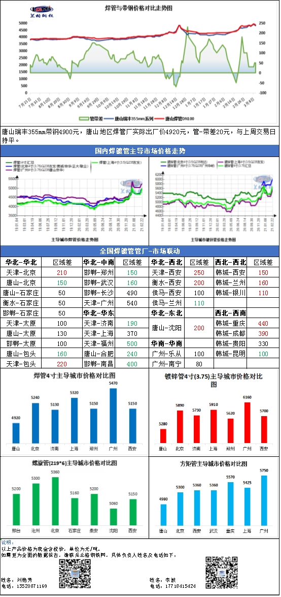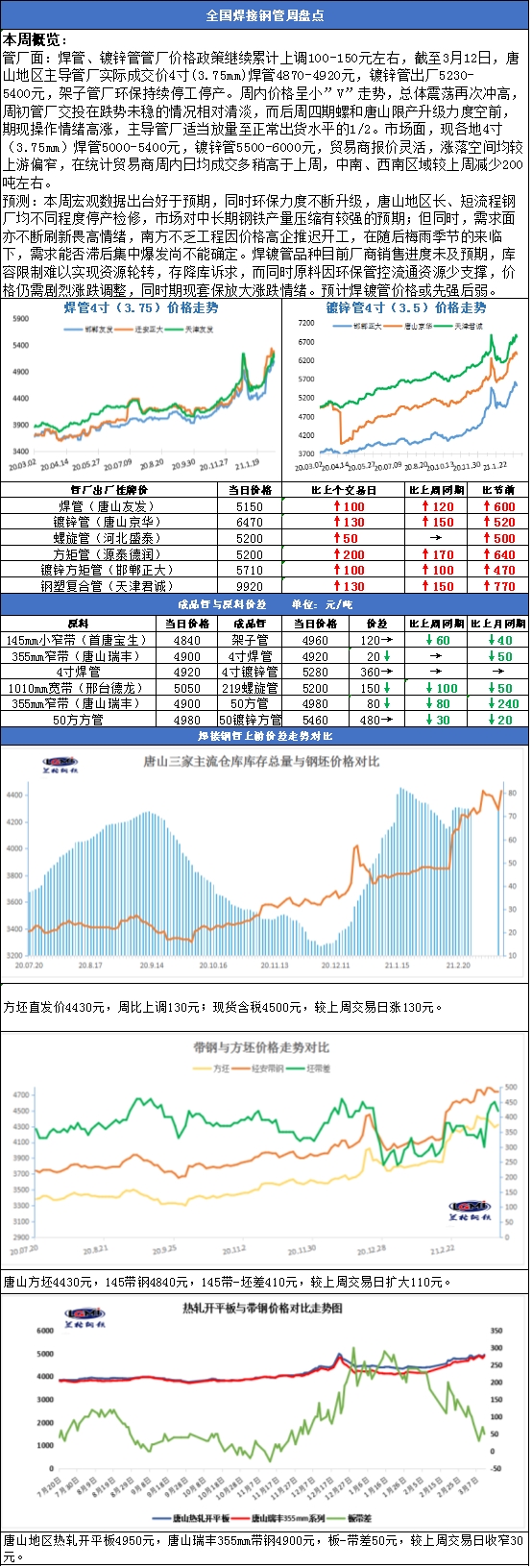 - 3月第2周焊管、镀锌管主要管厂出厂价汇总2021/3/12